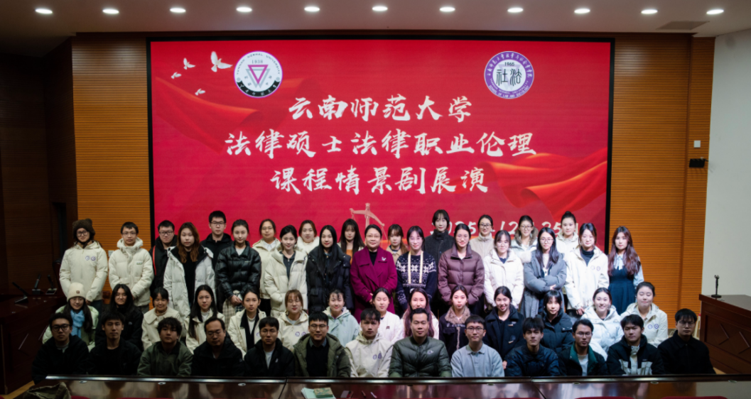 为深入贯彻落实立德树人根本任务,弘扬法治精神,强化法律职业伦理教育,2025 年 12 月 25 日,云南师范大学法学与社会学学院法律职业伦理课程情景剧展演在校园内顺利举行。